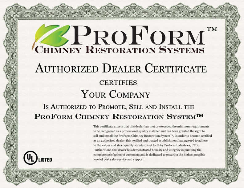 ProForm™ chimney liners can only be purchased by authorized ProForm Chimney Restoration™ Dealers, end users cannot purchase ProForm™ chimney Liner supplies, tools, or machines.