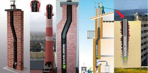 The main area of application of DualFuel ProForm Chimney RestorationTM is the lining of existing and new chimneys. It is UL approved to be used with gas and oil heated boilers. It can be used with all types of boiler as well as with chimneys of all sizes and shapes. Its rigidity characteristics enable it to be used for the construction of freestanding chimneys as well.