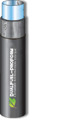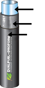 The resin transfers forces from one glass fiber to another and protects the glass fibers from corrosion. The solidity of composite materials is determined by the amount, type and direction of the thinner-than-hair reinforcing fibers. One square meter of the 2-mm thick wall structure of the DualFuel ProForm liner tube contains 3,000,000 meters of glass fiber.